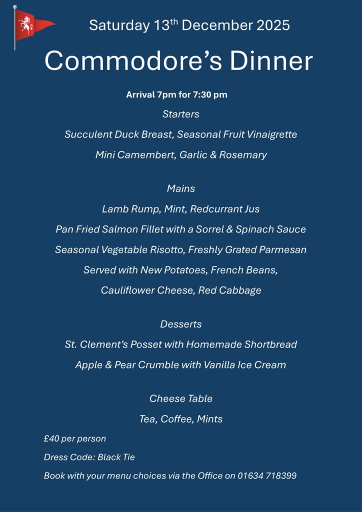 Commodore Dinner Saturday 13th December – SOLD OUT